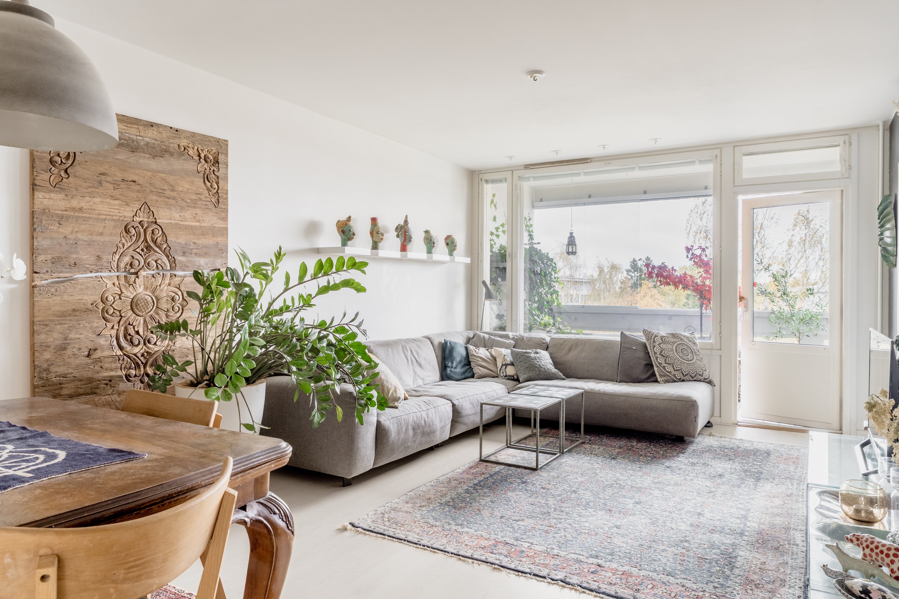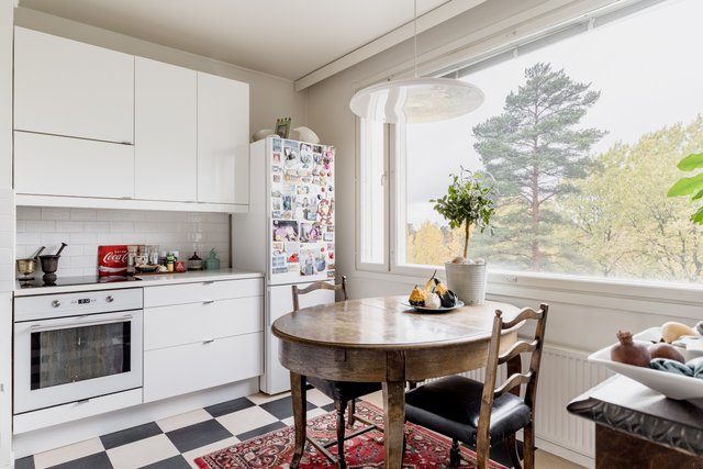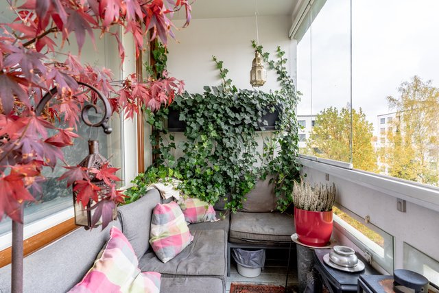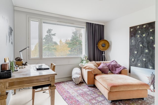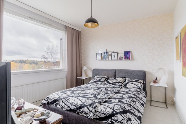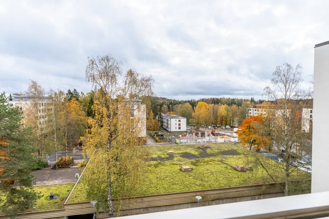 Asunto sijaitsee viidennessä kerroksessa hissillisessä talossa. Parvekkeelta ja ikkunoista avautuu avara näkymä pitkälle ympäristöön. Keittiön tasot ovat kiveä keittiö on varusteltu nykyaikaisilla laitteilla, kuten induktioliedellä.