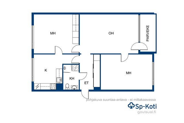 - Ei tarkistusmitattu. Pinta-alat saattavat tämän ikäisissä kohteissa (yhtiö rekisteröity ennen 01.01.1992) poiketa olennaisestikin asuinrakennusten nykyisten mittaustapojen ja standardien (SFS 5139) mukaan laskettavasta asuintilojen pinta-alasta. Pinta-ala voi siis olla edellä mainittua pienempi tai suurempi.
