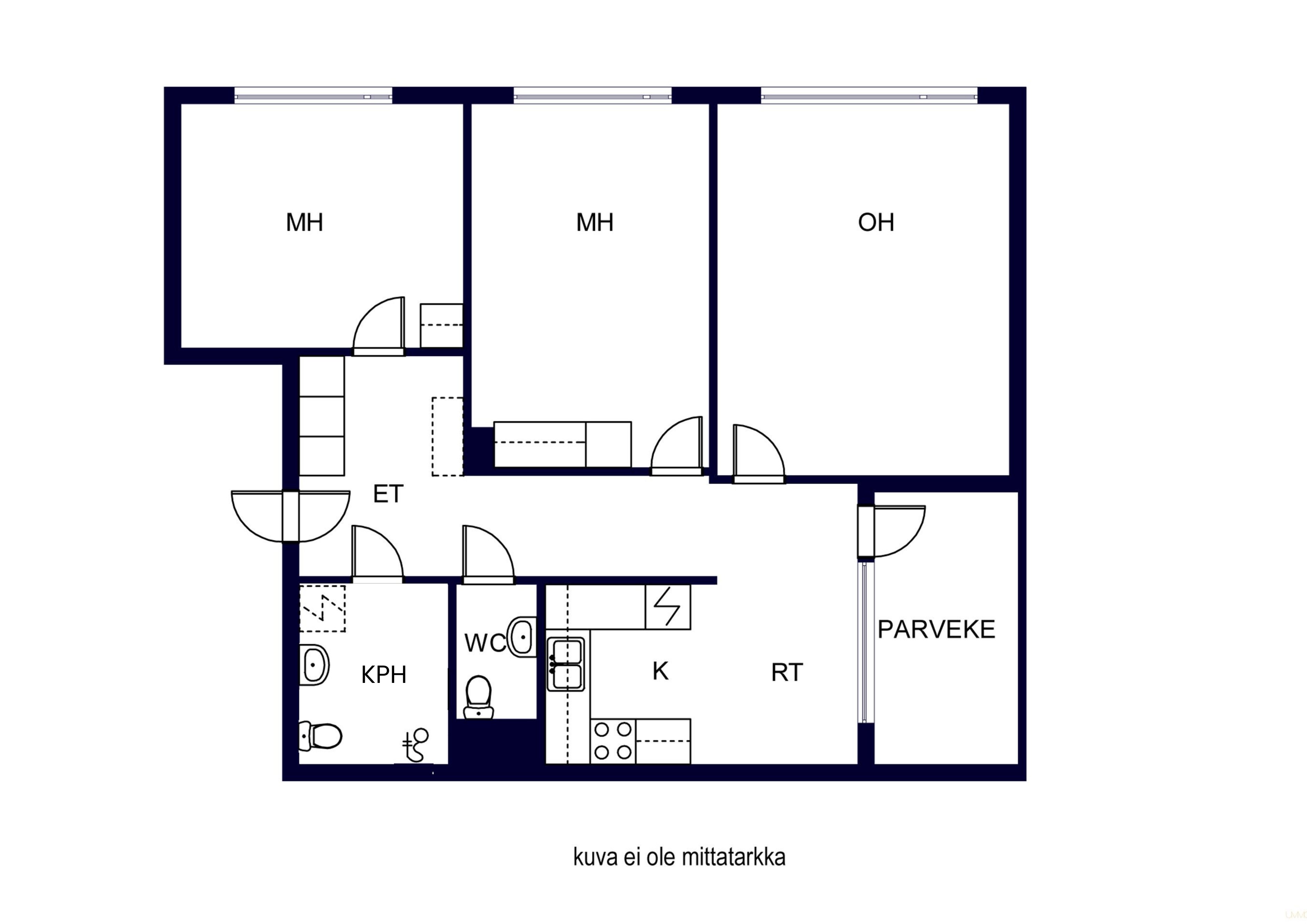 3h + k + kph + wc + lasitettu parveke