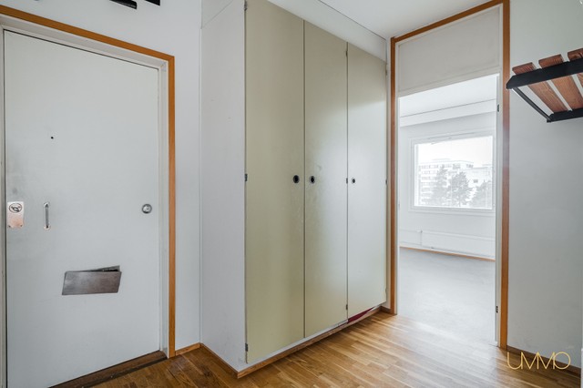 Asunto tarjoaa kaksi makuuhuonetta, keittiön, olohuoneen, kylpyhuoneen, erillisen wc:n sekä lasitetun parvekkeen, josta avautuvat upeat näkymät. Kodin kylpyhuone ja wc ovat vastikään remontoitu, mikä tuo modernia ilmettä muuten alkuperäiskuntoiseen asuntoon.