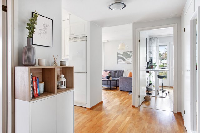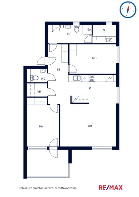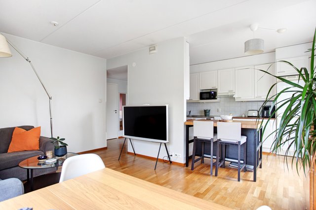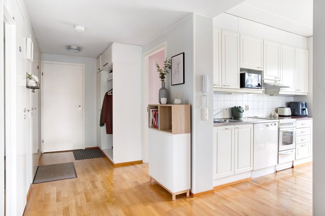 Olohuone ja keittiö muodostavat yhtenäisen, avaran kokonaisuuden, jossa on helppo viettää aikaa perheen ja ystävien kesken. Keittiössä on runsaasti laskutilaa ja selkeä, käytännöllinen asettelu. Asunnossa on erillinen WC sekä vaatehuone, joka tarjoaa kaivattua säilytystilaa arjen sujuvuuteen.