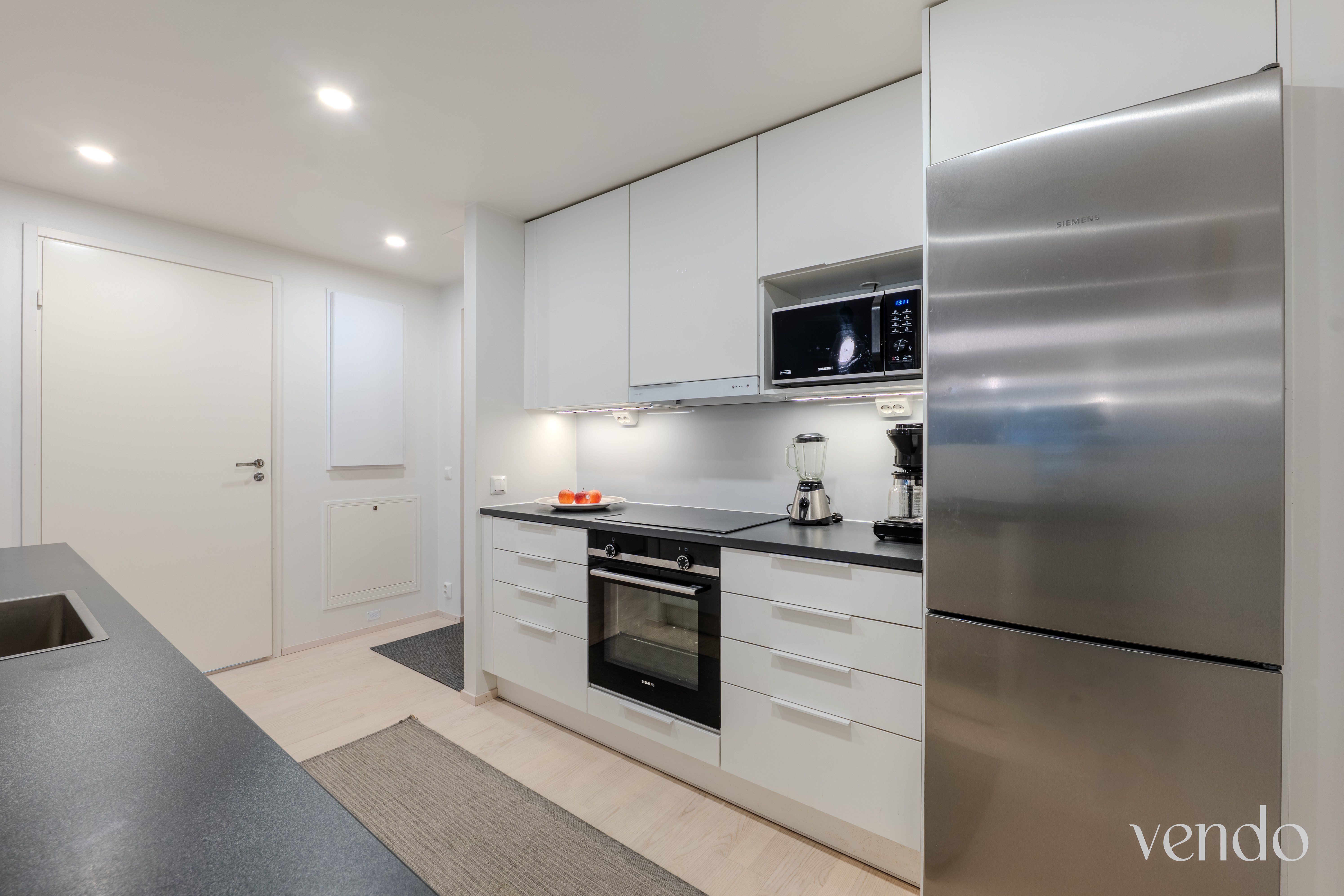 - Jääkaappipakastin, uuni, liesi, astianpesukone, ja keittiösaareke