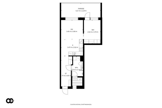 - Isännöitsijäntodistuksen mukainen, (Pinta-ala ei ole tarkistusmitattu ja todellinen pinta-ala voi olla suurempi tai pienempi, kuin ilmoitettu)
