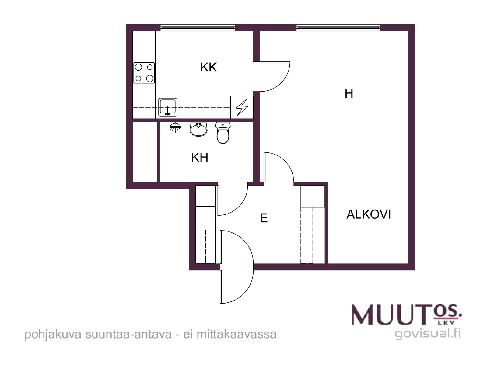 - Edellä mainittu pinta-ala saattaa tämän ikäisessä kohteessa poiketa olennaisestikin huoneiston nykyisen ja rakentamisaikaisen mittaustapojen ja standardien mukaan laskettavasta pinta-alasta. Huoneiston todellinen pinta-ala voi olla yhtiöjärjestyksessä, isännöitsijäntodistuksessa ja esitteessä mainittua pienempi tai suurempi. Hinta ei ole pinta-alaperusteinen. Yhtiöjärjestyksen mukainen huoneistoselitelmä: 1h+kk