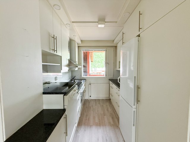 Tilava ja toimivapohjainen kahden makuuhuoneen huoneisto luhtitalon toisessa kerroksessa vuonna 1978 valmistuneessa taloyhtiössä.