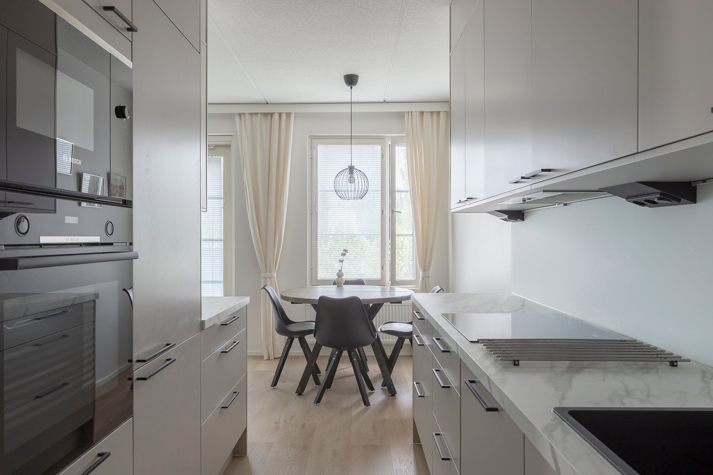- Jääkaappipakastin (Integroitu), uuni (Integroitu), mikroaaltouuni (Integroitu), liesi (Integroitu), ja astianpesukone (Integroitu)