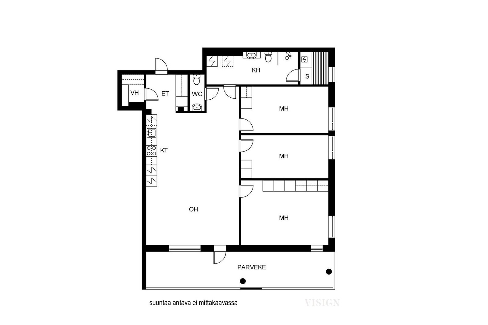 4 h, avokeittiö, erill.wc, kph/s, vh, lasitettu parveke (Yj. 4h+kt+s)