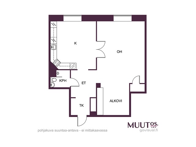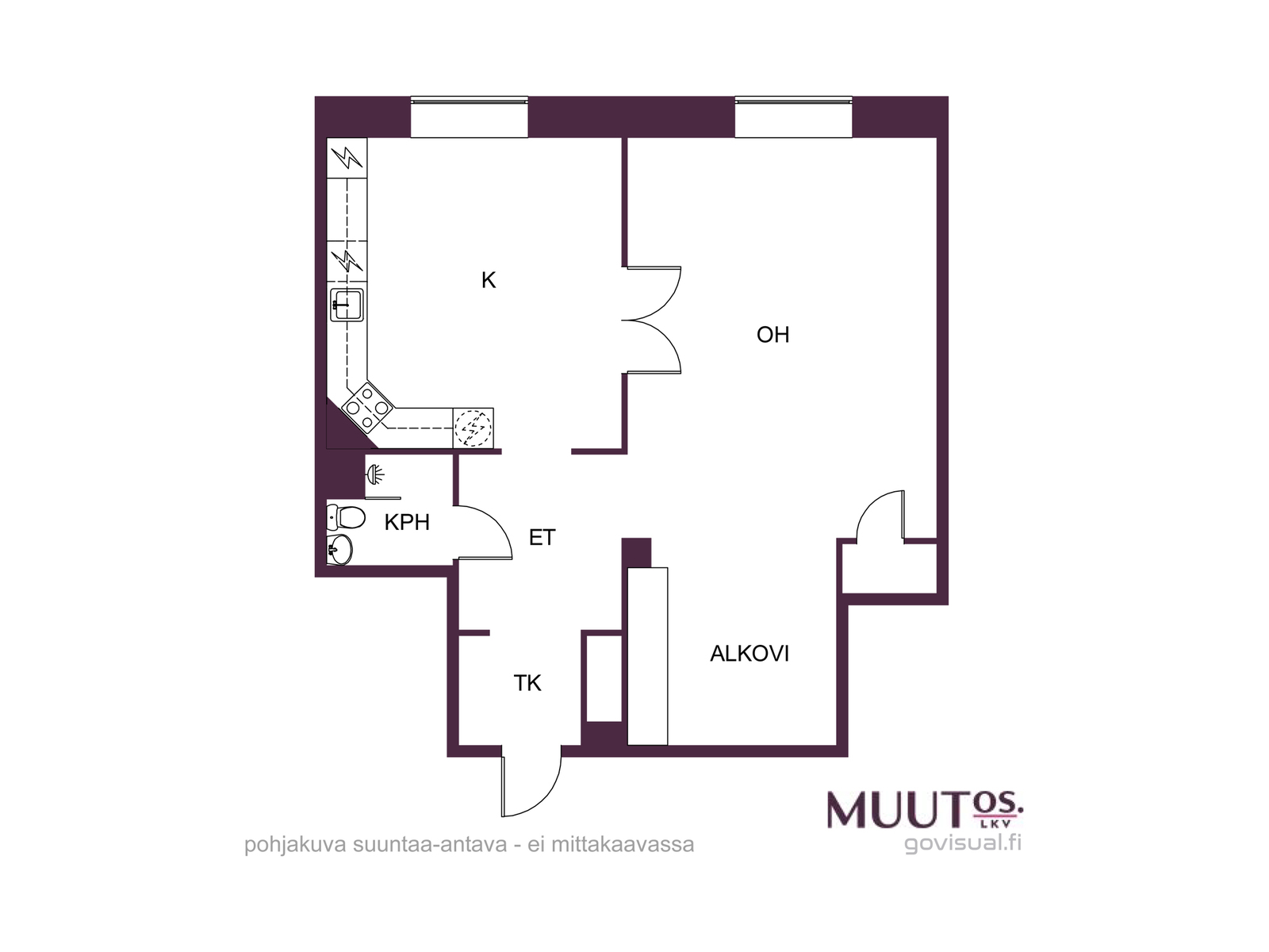 Asunto on remontoitu 2000-luvun alussa ja pohja on erittäin toimiva. Talon putkiremontti on tehty 2010-2011, milloin myös kylpyhuone uusittu. Keittiöön mahtuu reilun kokoinen pöytä ja olohuoneeseen johtaa viehättävät pariovet. Sängylle on looginen paikka alkovissa ja säilytystilaakin asunnosta löytyy. HUOM! Pyykinpesukone on keittiössä piilossa uunin alapuolella olevassa kaapissa.