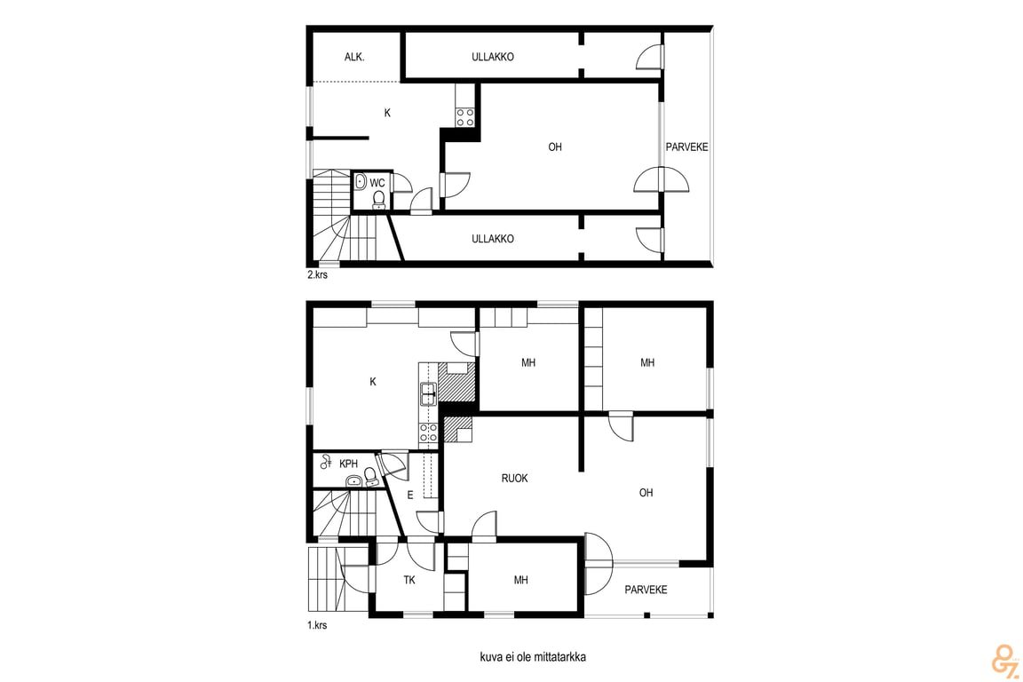 - Molemmissa kerroksissa erillinen wc.