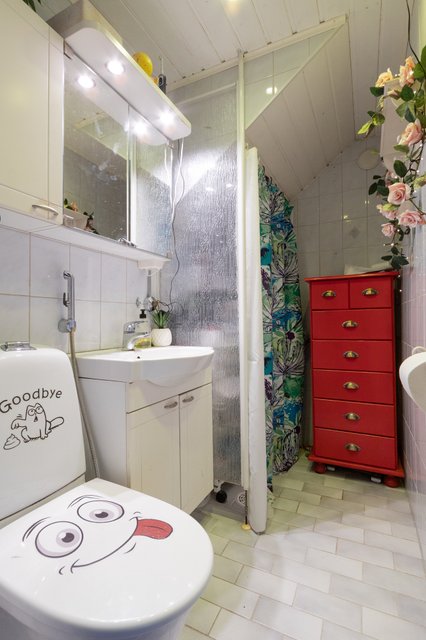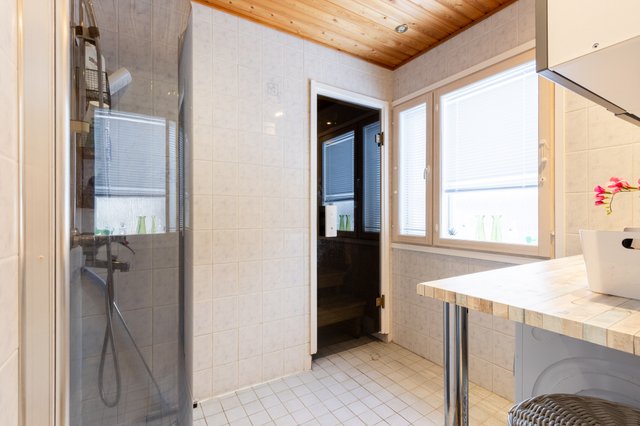 - Suihku, lattialämmitys, ja pesukoneliitäntä