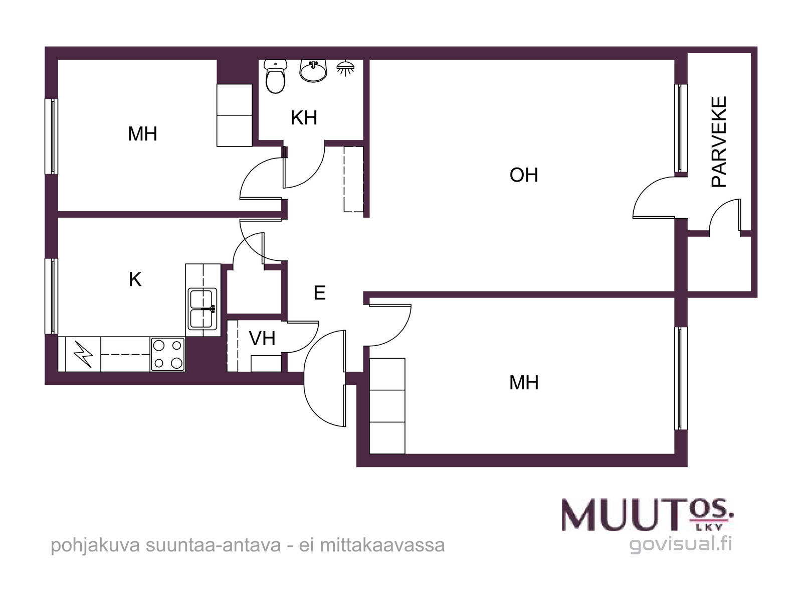 - Edellä mainittu pinta-ala saattaa tämän ikäisessä kohteessa poiketa olennaisestikin huoneiston nykyisen ja rakentamisaikaisen mittaustapojen ja standardien mukaan laskettavasta pinta-alasta. Huoneiston todellinen pinta-ala voi olla yhtiöjärjestyksessä, isännöitsijäntodistuksessa ja esitteessä mainittua pienempi tai suurempi. Hinta ei ole pinta-alaperusteinen. Yhtiöjärjestyksen mukainen huoneistoselitelmä: 3h+k