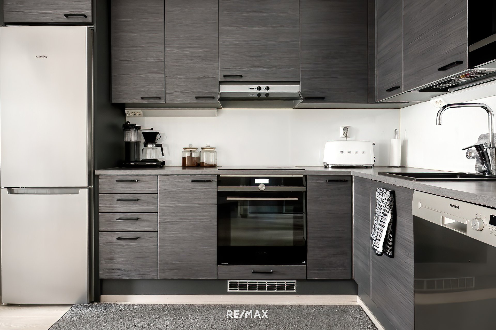 2018 valmistuneen taloyhtiön moderni koti hurmaa viihtyisällä tunnelmalla heti sisään astuessa. Rakennusvaiheessa tehdyt pienet lisäykset tekevät arjesta sujuvaa ja tilankäytöstä tehokasta.