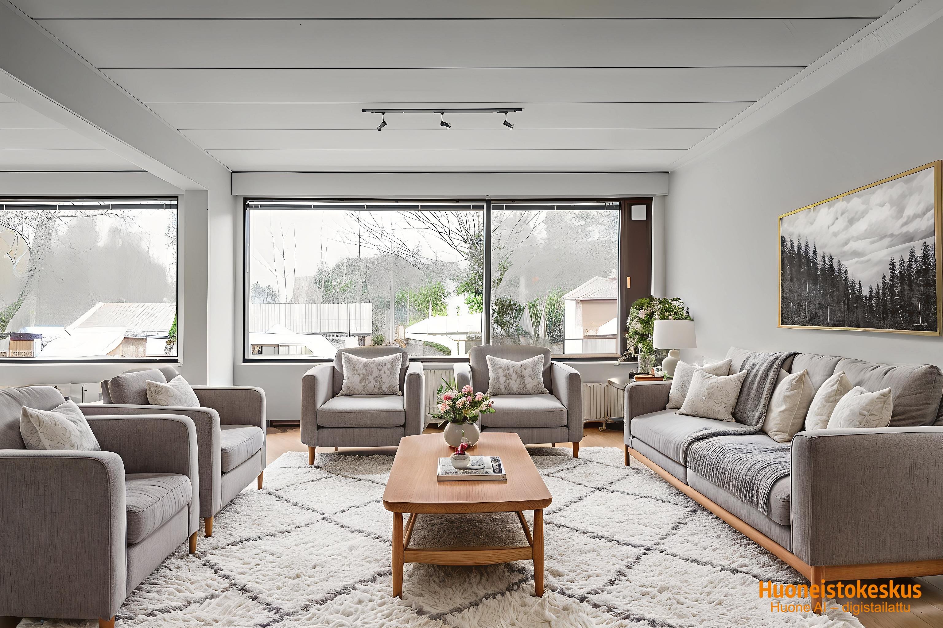 - Iso olohuone, osin avaraa tilaa keittiön kanssa.