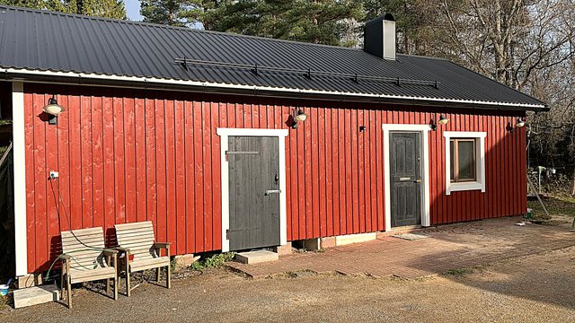 - Keskeneräinen sauna / suihkutila talousrakennuksessa. Puukiuas/pata ostettuna (asentamaton).