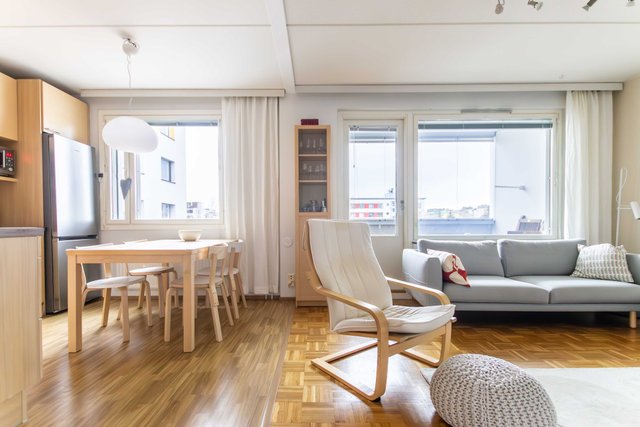 Tämä 73 neliömetrin asunto sijaitsee neljännessä kerroksessa kuusikerroksisessa talossa, jossa on hissi. Asunto on hyvässä kunnossa, keittiö on uusittu vuonna 2009. Keittiön varustukseen kuuluu muun muassa jääkaappipakastin (uusittu 2024), astianpesukone (2015) ja keraaminen liesi sekä erillinen uuni.