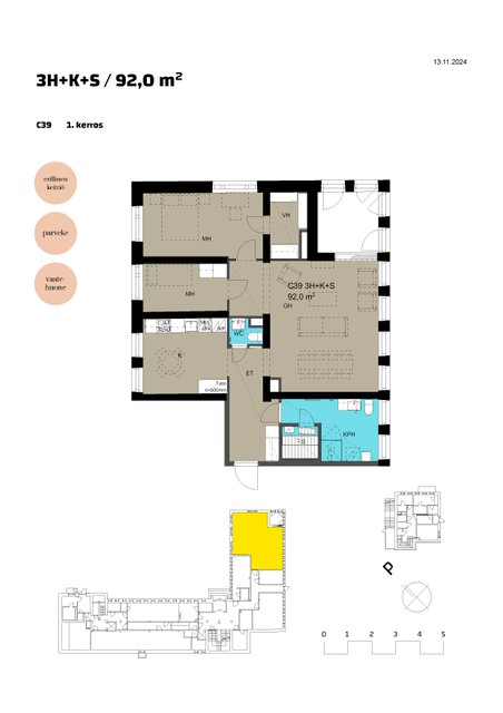 ASUNTO C39 / 3h+k+s / 92m2 ihanalla sisäänvedetyllä parvekkeella ja saunalla.