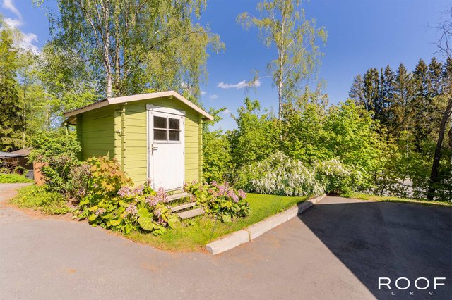 Pihapiirissä on lisäksi autokatos kahdelle autolle sekä varastotilaa sen yhteydessä.