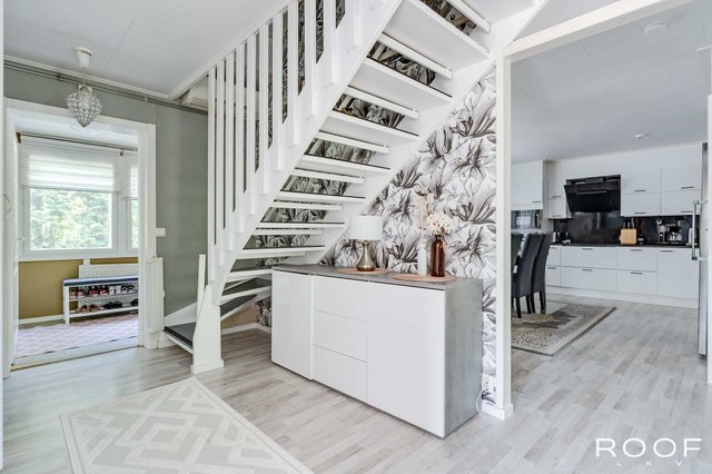 Tämä vuonna 2001 valmistunut, puolitoistakerroksinen koti tarjoaa tilaa ja toimivuutta isommallekin perheelle. Talo sijaitsee omalla 760 m² rinnetontilla erinomaisilla kulkuyhteyksillä – liikutpa sitten omalla autolla tai julkisilla.