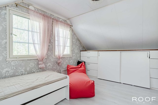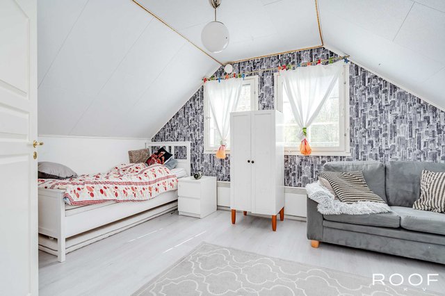 Yläkerrasta löytyy kolme huonetta sekä erillinen WC, mikä tekee arjesta sujuvaa isommallekin perheelle.