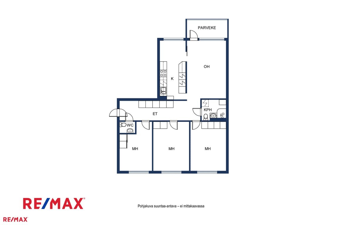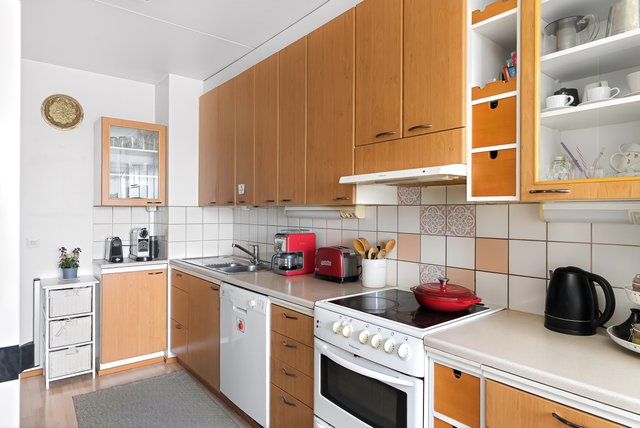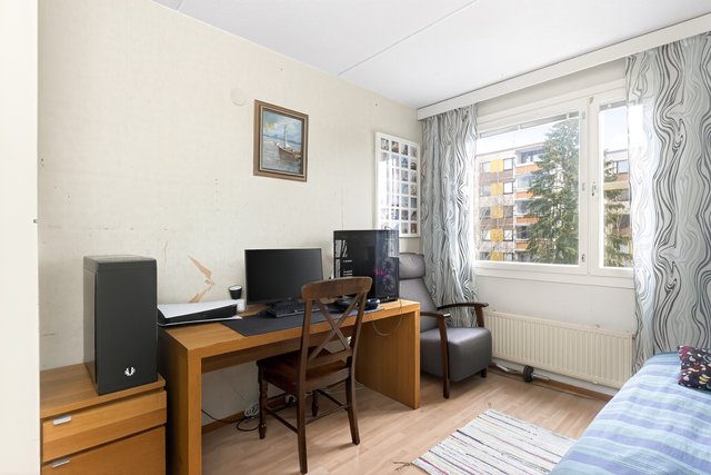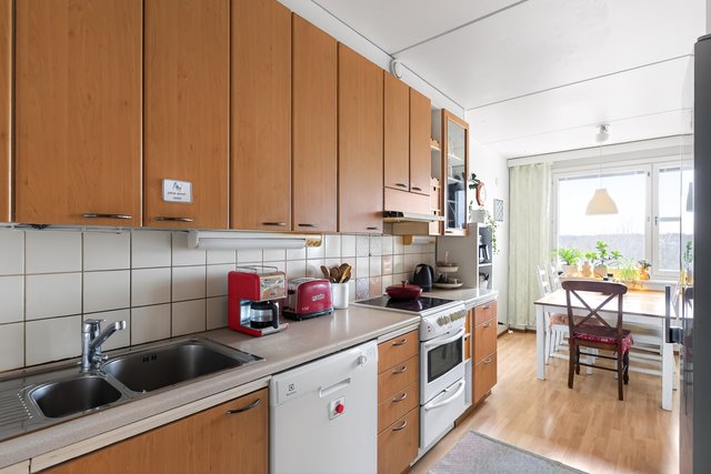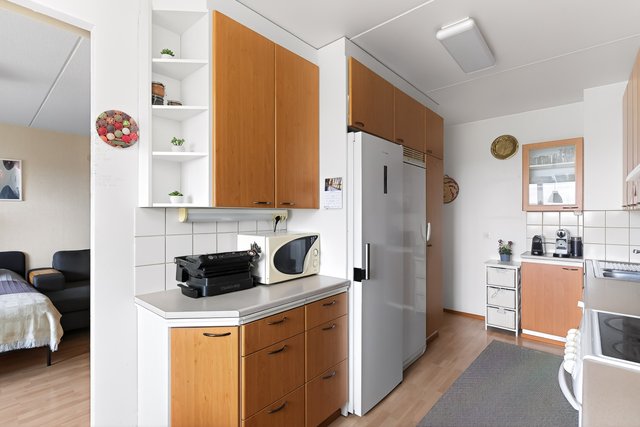 Asunnossa on hyvä pohja, tilavat huoneet ja keittiö jossa paljon säilytystilaa. Keittiössä on myös kaikki tarvittavat varusteet kuten jääkaappi, erillinen pakastinkaappi, liesi ja astianpesukone. Kylpyhuoneessa on wc-istuin, suihkukaappi ja pesukoneliitäntä, erillinen wc tuo arkeen sujuvuutta.