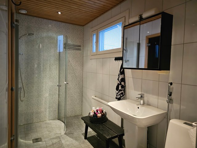 - Pesutiloissa ikkuna, Kylpyhuone remontoitu v.2008. Kylpyhuoneen lasiovi, silikonisaumat ja suihkuseinä uusittu v.2020.