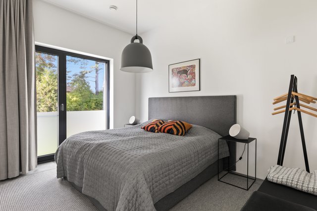 - Yksi makuuhuone yläkerrassa, jossa ranskalainen parveke. Alakerrassa toinen makuuhuone, jonka yhteydessä iso Walk-in-Closet nauhaikkunalla, jonka saa tarvittaessa erilliseksi huoneeksi.