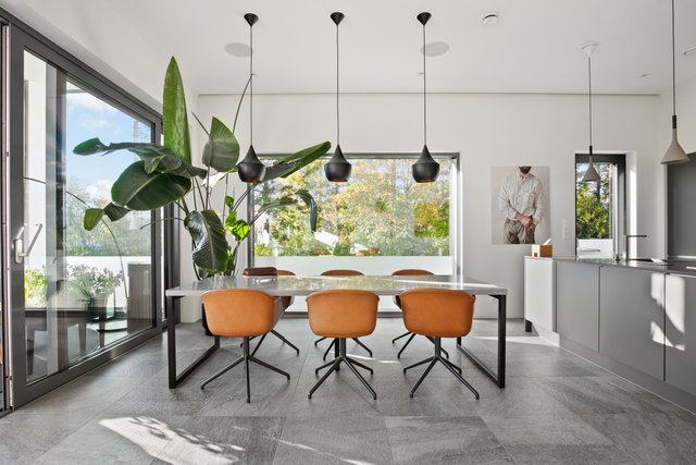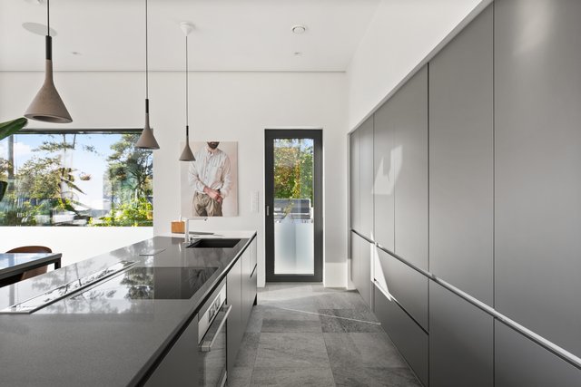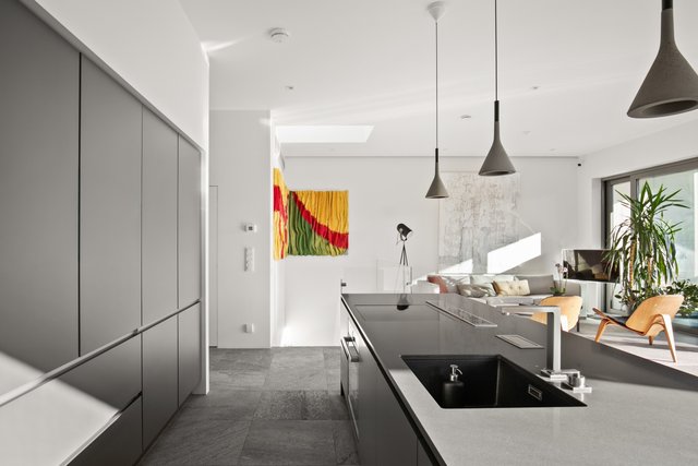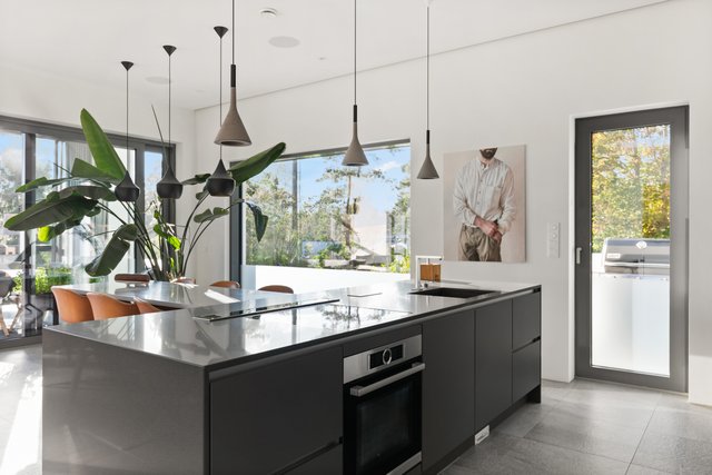 - Noblessan avokeittiössä tummanharmaat kaapistot, mustat kvartsikivitasot. Isossa keittiösaarekkeessa induktioliesi, tasosta nouseva liesituuletin hormiin. Integroidut kodinkoneet: astianpesukone(Miele), erillisuuni/mikro (Bosch), jääkaappi, pakastin. Keittiöstä oma uloskäynti pienelle parvekkeelle (sopii mainiosti mm.grillaukseen) josta myös käynti omalle pihalle.
