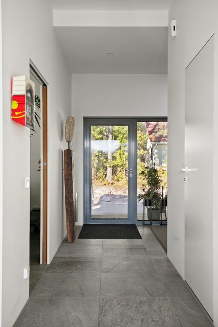 Mankkaalla päättyvän tien varrelle rakennettu moderni paritalokoti - ekologinen ja energiatehokas kivitalo. Tässä vaaleaksi rapatussa paritalokodissa on skandinaavista arkkitehtuuria ja isoja ikkunoita sekä huonekorkeutta. Arkkitehti Sami Paasen käsialaa Lammi-kivitaloilta. Kahdessa kerroksessa on tilaa yhdessäoloon ja yksityisyyteen. SIsustusratkaisut ovat aikaa kestäviä, materiaaleissa korostuu harmaa betonilaatta ja klassinen harmaa väri mm. keittiössä ja ovissa. Iso avokeittiö ja ruokailutila sekä olohuone ovat yhtenäistä avointa tilaa. Olohuoneesta on käynti koko kodin levyiselle upealle 30 neliön terassiparvekkeelle joka on myös lasitettu. Parveke on mitä ihanin oleskeluun! Näkymät ovat korkealta tontilta avoimet yli Mankkaan kattojen.