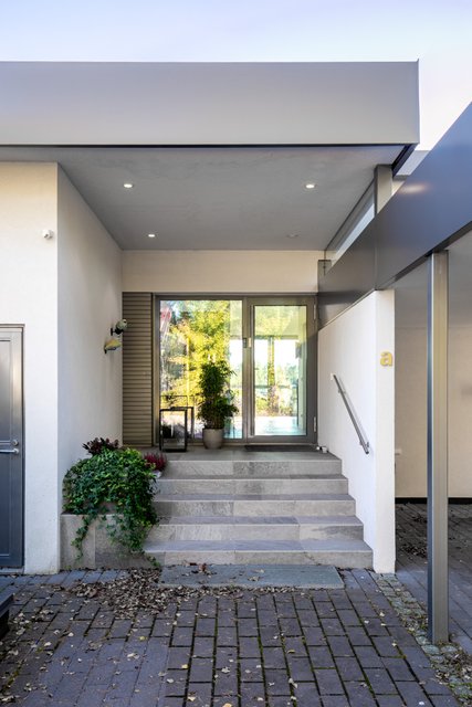 - Takapihalla on iso komposiittiterassi, joka on katettu osittain. Pihalla myös nurmikkoa joka ympäröi taloa ja tuija-aita sekä aitamuuri. Etupiha on laatoitettu. Piha-alueseen kuuluu myös kaksi erillistä puistokaistaletta.