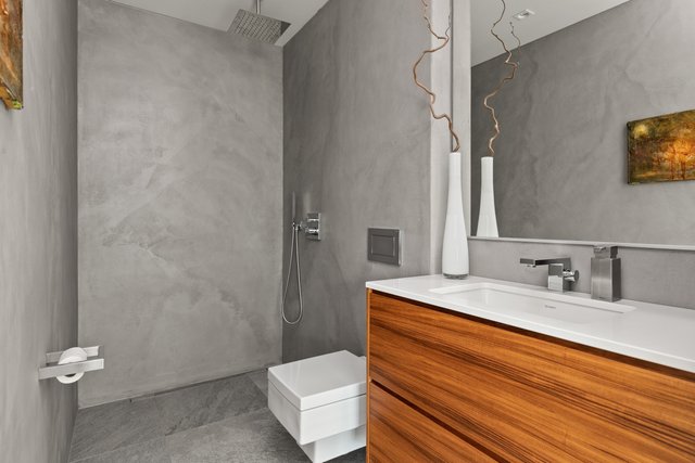 - Yläkerrassa ikkunallinen kph/wc: sadesuihkusetti, linjalattiakaivo,seinä-wc, allaskaapisto, valaistu peili. Alakerran saunan pesuhuoneessa on kaksi suihkua: vesiputos-suihku ja sadesuihkusetti.