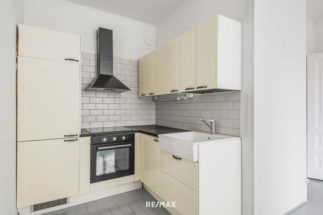 Kodin sydän on kaunis keittiö, jossa perinteiset kaappien ovet, lämmin sävy ja ajaton kaakelointi muodostavat hurmaavan kokonaisuuden. Keittiö on pieni, mutta toimiva ja se sulautuu luontevasti osaksi oleskeluhuonetta. Pieni ruokailuryhmä mahtuu myös keittiön yhteyteen. Oleskeluhuone on viihtyisä ja vanhanajan komeroista löytyy säilytystilaa. Huoneistolle löytyy lisäksi myös kellarikomero.