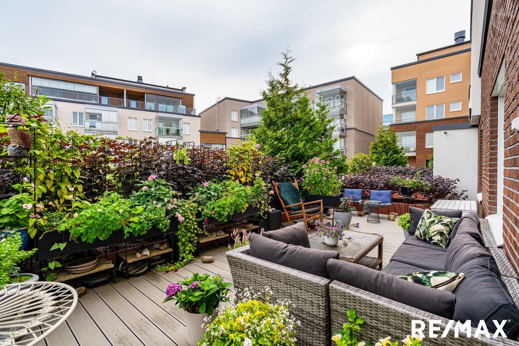 Erityisenä lisänä on suuri, noin 32 m² avoin, mutta suojaisa terassi, tämä on oma salainen keidas sisäpihan suojassa. Täällä on täydellinen paikka nauttia kesäpäivistä ja rauhallisista illoista ja vielä lämpöisistä syysilloistakin kynttilän valossa.