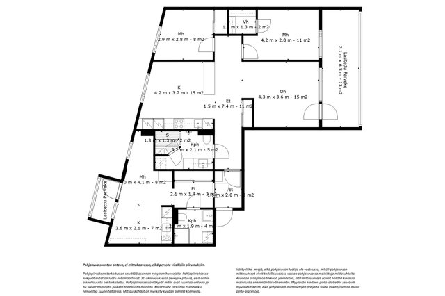 - Pinta-alaa ei ole tarkistusmitattu. Pinta-ala voi siis olla edellä mainittua pienempi tai suurempi.