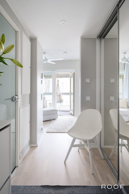 - Tuulikaapista sisäänkäynti sekä yksiön että kolmion puolelle, joihin kumpaankin oma lukittava ulko-ovensa.