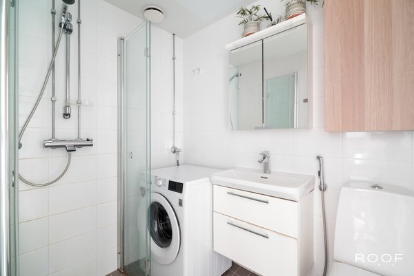 - VARUSTUS: Suihku Suihkuseinä Wc istuin Pesukoneliitäntä Hana Allas Peilikaappi Allaskaapisto Lattialämmitys SEINÄT: Laatta. LATTTIA: Laatta.