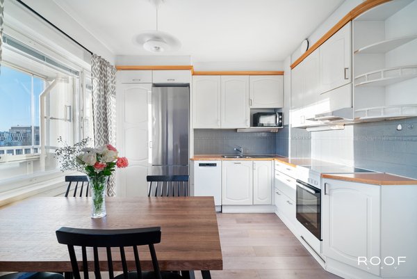 - VARUSTUS: Induktioliesi Liesituuletin Uuni Hana Kaapisto Allas Astianpesukone Jääkaappipakastin SEINÄT: Maalattu. TYÖTASO: Laminaatti. LATTIA: Laminaatti.