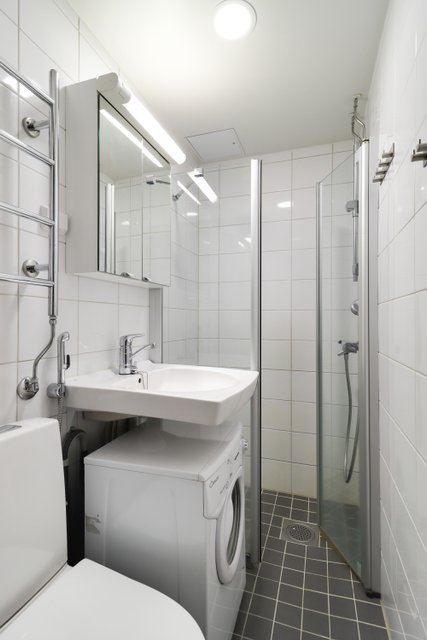 - WC-istuin, suihku, pesukone (toiminnasta ei ole varmuutta), pyyhekuivain., pesukoneliitäntä, lattialämmitys, ja peilikaappi (valolla)