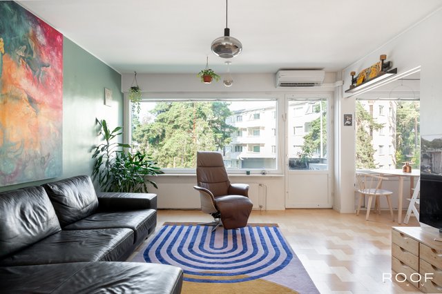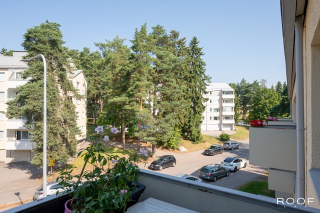 Poutamäentiellä, vehreän ja rauhallisen Pajamäen sydämessä, odottaa tämä kaunis ylimmän kerroksen kolmio uusia asukkaitaan. Asunnossa on 65 m2 tehokasta ja viihtyisää tilaa, kaksi tilavaa makuuhuonetta, tyylikkäästi remontoitu keittiö (2021), kylpyhuone sekä harvinaista herkkua, kaksi parveketta, jotka sijoittuvat asunnon molemmin puolin. Kesähelteillä viilennystä tuo myös asuntoon asennettu ilmalämpöpumppu.