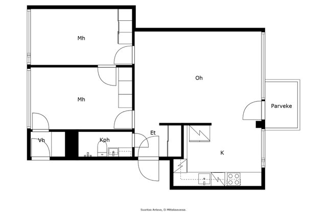 - SEINÄT: Maali ja tapetti LATTIA: Parketti VARUSTELU: Makuuhuoneissa liukuovi kaapit, toisessa makuuhuoneessa lisäksi komero/vaatehuone ja seinässä yksi syvä yläkaappi.