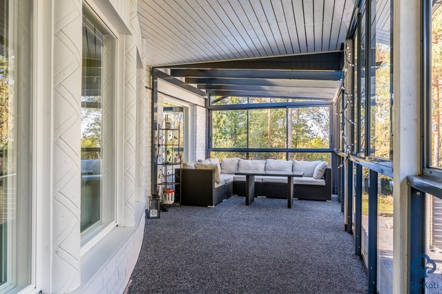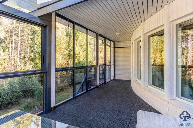 - Molemmin puolin taloa lasitetut terassit. Lisäksi terassit talon edessä ja uima-altaan yhteydessä.