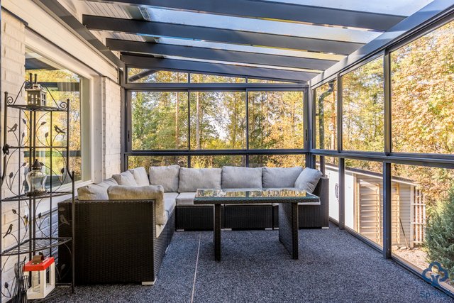 Talon molemmilla puolilla on lasitetut terassit, jotka tarjoavat mukavat tilat rentoutumiseen. Lisäksi etupihan terassi ja uima-altaan yhteydessä oleva terassi luovat upeat puitteet kesäpäivien viettoon.