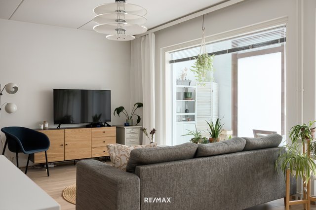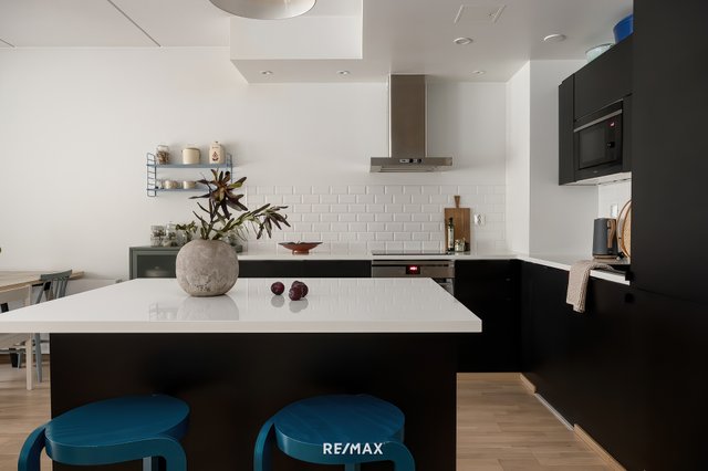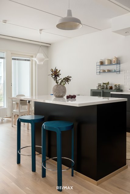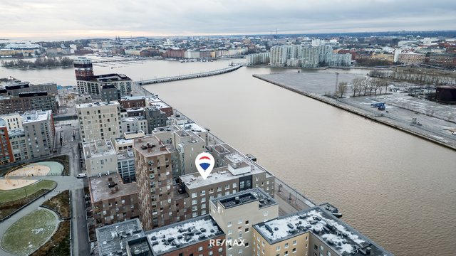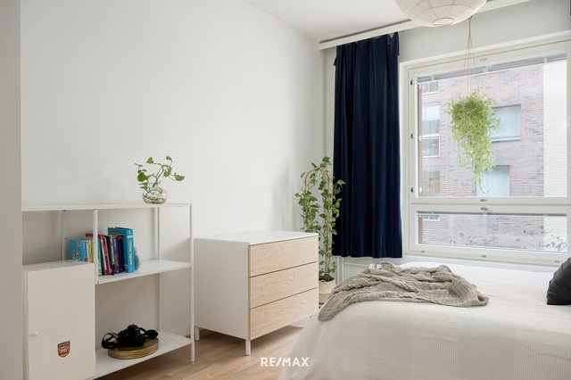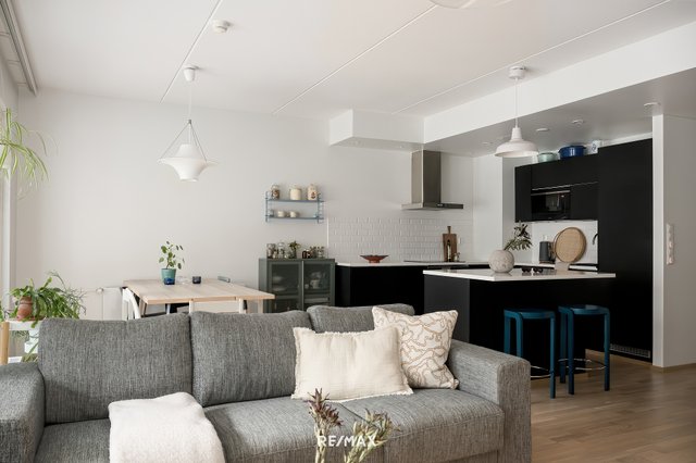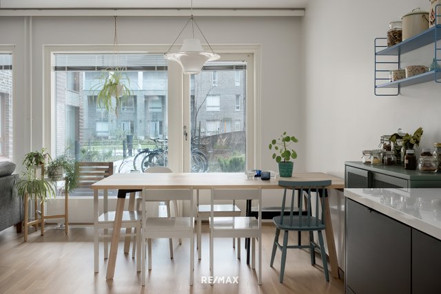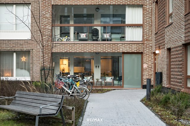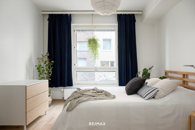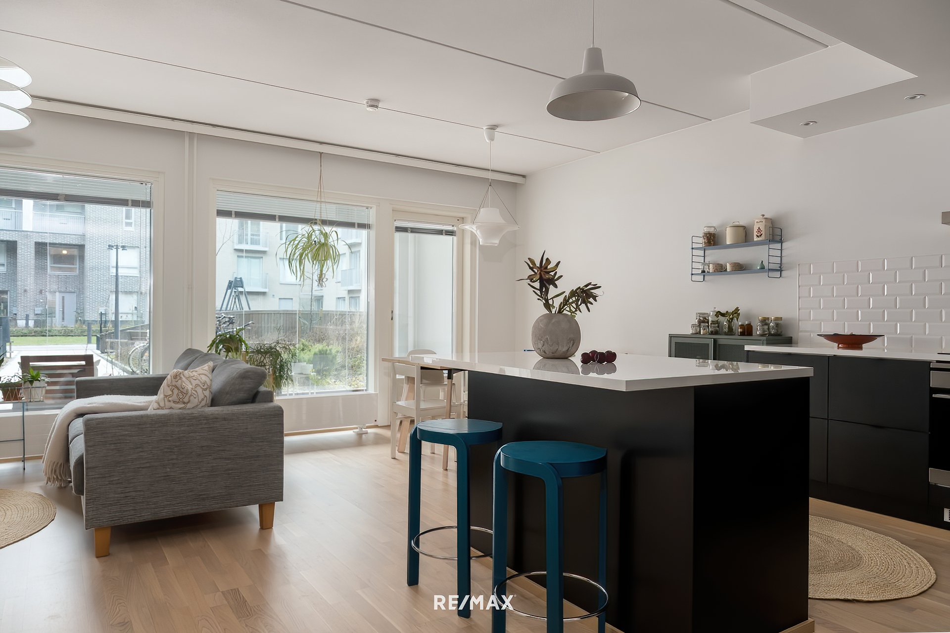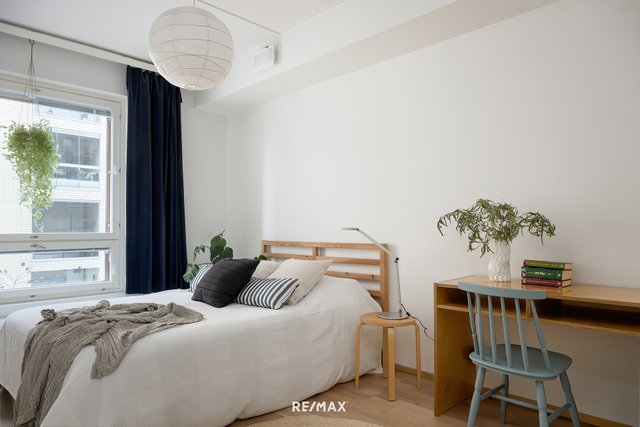 Tämä tilava ja moderni kolmio sijaitsee halutulla Sompasaaren alueella Kalasatamassa, vain kivenheiton päässä merenrannasta. Vuonna 2019 valmistunut asunto tarjoaa avaran pohjaratkaisun, jossa saarekkeellinen avokeittiö yhdistyy saumattomasti olohuoneeseen. Suurella terassiparvekkeella voit nauttia vaikkapa aamukahvit rauhallisessa ympäristössä. Makuuhuoneet ovat 2. kerroksen korkeudella maanpinnasta. Säilytystilaa löytyy runsaasti vaatehuoneen ja kiinteiden kaapistojen ansiosta.
