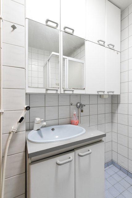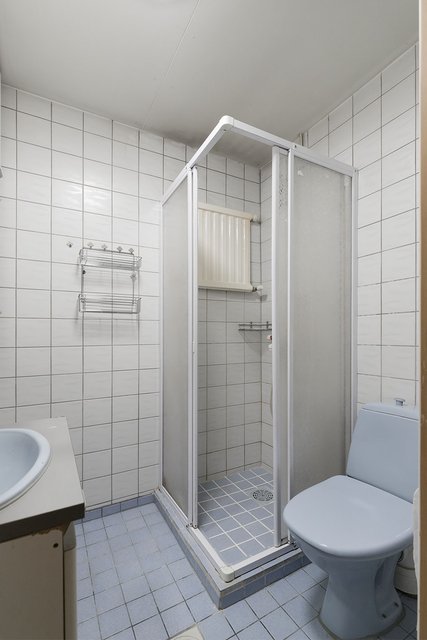 - WC-istuin, suihku, suihkukaappi, peilikaappi, bidee-suihku, allaskaappi, pesukoneliitäntä, ja pesuallas