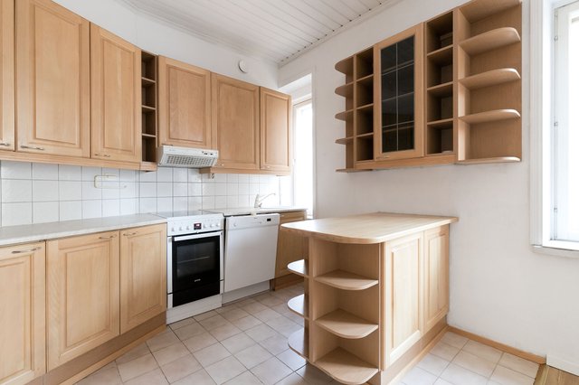 - Jääkaappipakastin, liesi, liesituuletin, ja astianpesukone