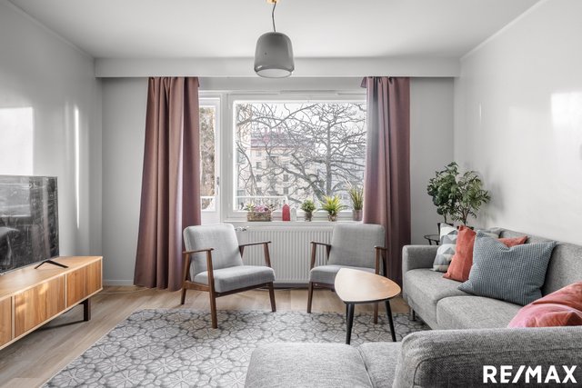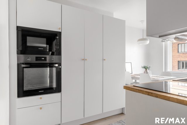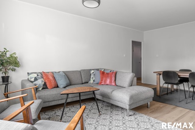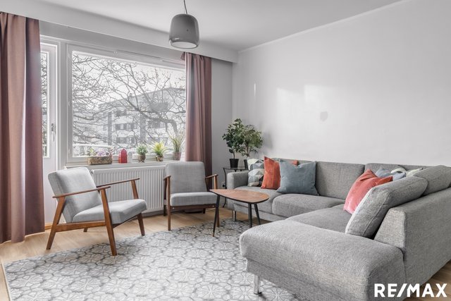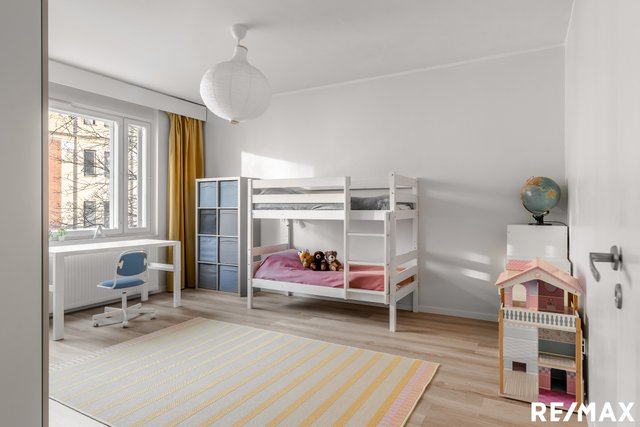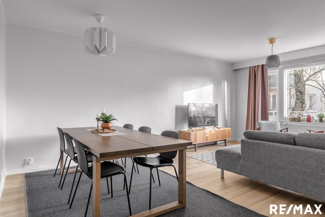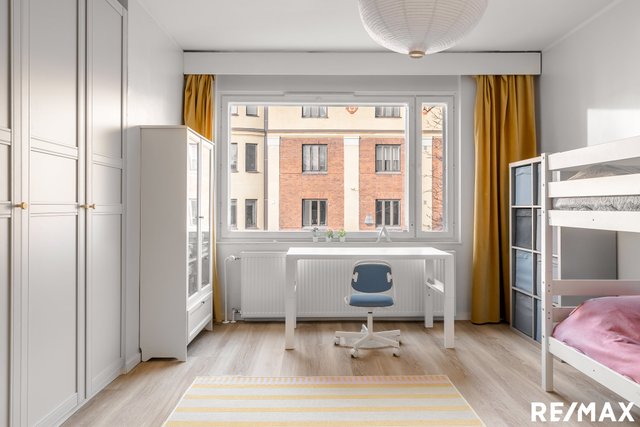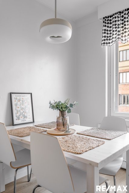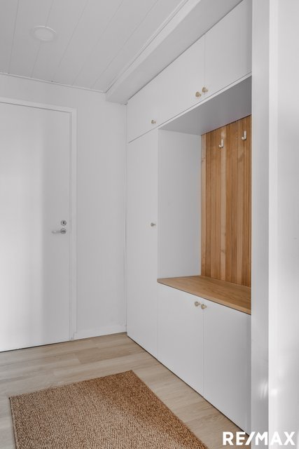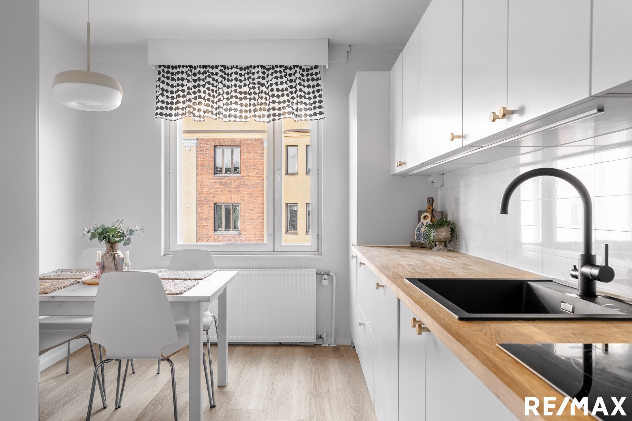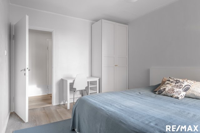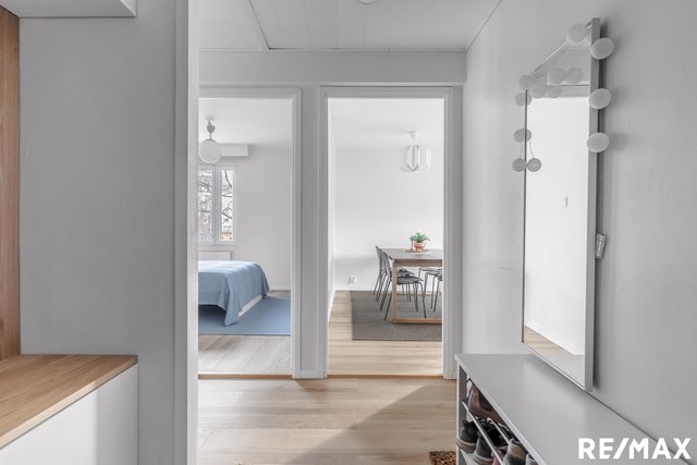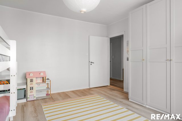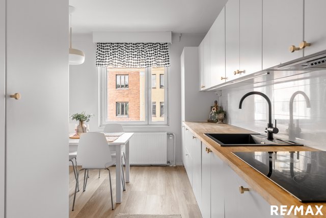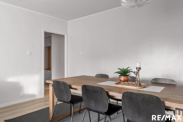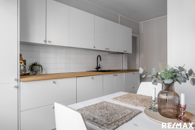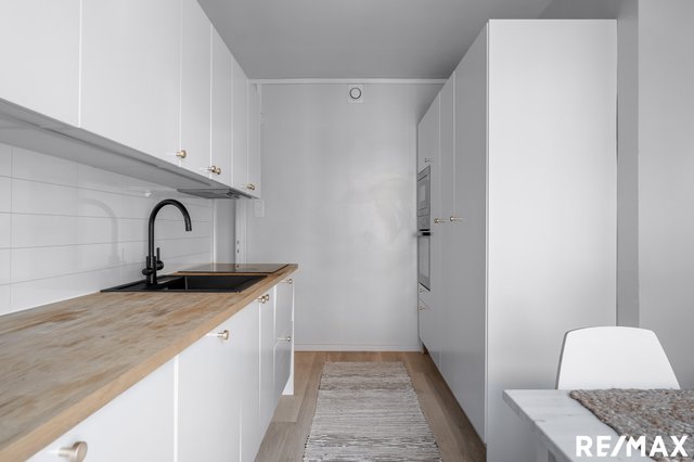 Tämä täysin muuttovalmis neljän huoneen kerrostaloasunto odottaa uusia asukkaita. Asunnossa on kauttaaltaan yhtenäinen lattiamateriaali ja vaaleat seinäpinnat. Myös keittiön, makuuhuoneiden ja eteisen kaapistot vetimineen ovat samaa modernia tyyliä. Keittiö on nykyaikaisiin tarpeisiin soveltuva integroituine kodinkoneineen ja aamupalakaappeineen.