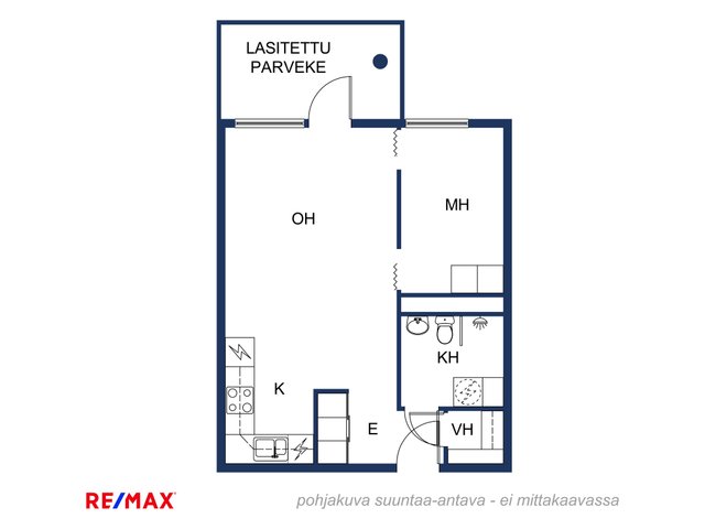 - Olohuoneessa runsaasti pistorasioita. Käynti parvekkeelle.