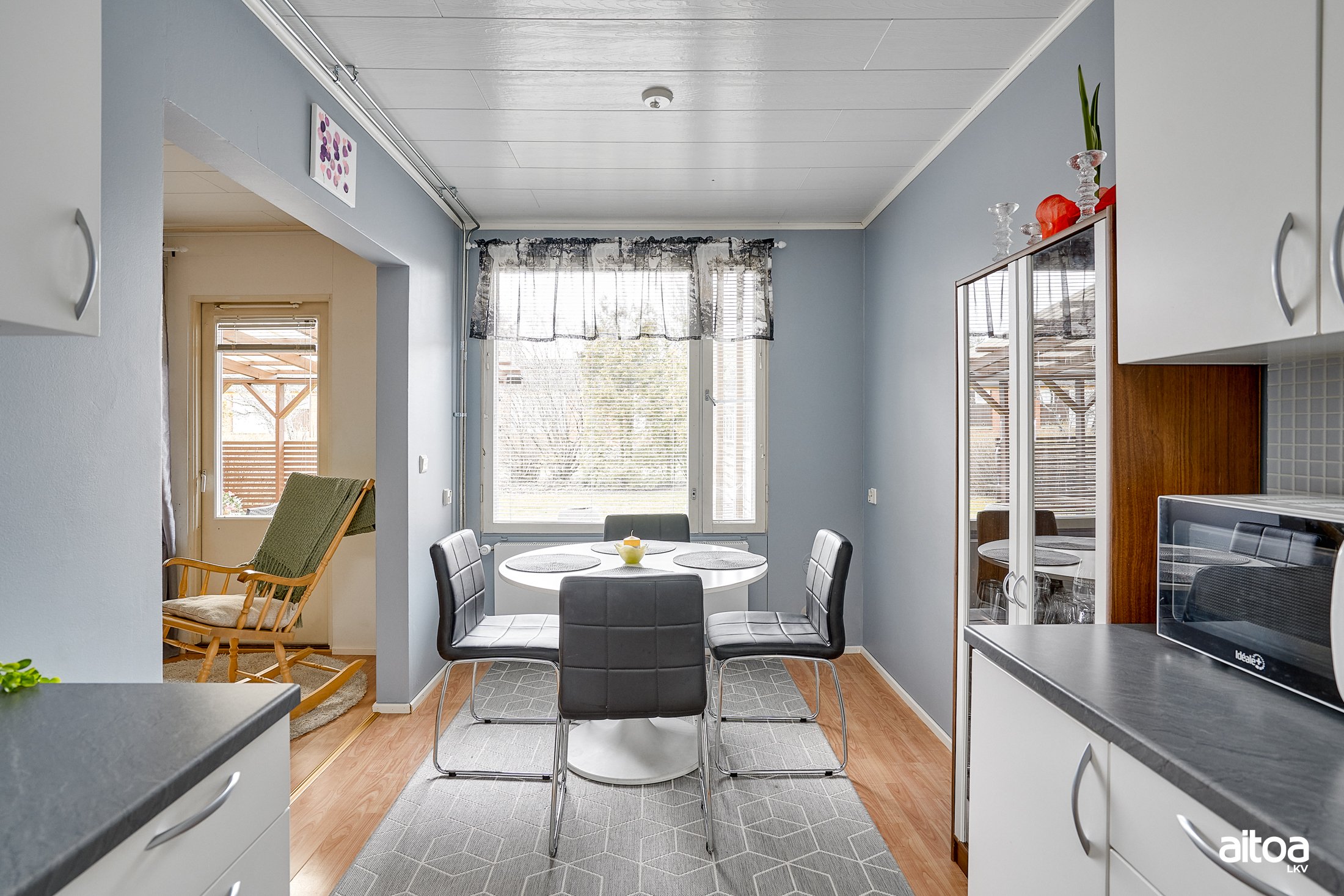 Lämmitysjärjestelmä on myös juuri uusittu energiatehokkaaseen ilma-vesilämpöpumppuun. Myös käyttövesiputket, lämpöjohtoremontti pattereineen on jo takanapäin ja viemäritkin on sukitettu. Tässä on huoleton koti pitkäksi aikaa ja erinomainen kohde yhden tai kahdenhengen taloudelle.