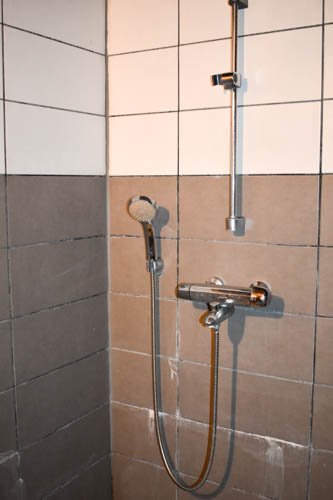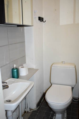- Pesutilat kellarissa saunan yhteydessä. Laatoitettu suihkunurkkaus.