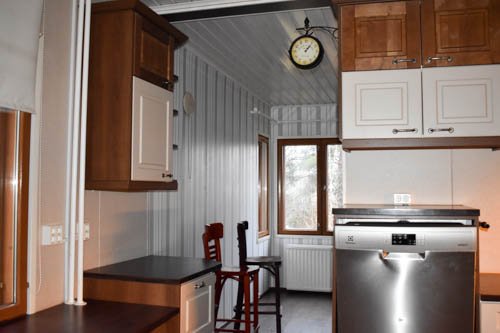 - Keittiö ja ruokahuone uusittu 2011, pinnat ja koneet ja osa käyttövesiputkistosta. Laminaattilattiat. Kodinkoneina jääkaappi, induktioliesi, astianpesukone, erillinen kiertoilmauuni. Astianpesukone uusittu 2019.