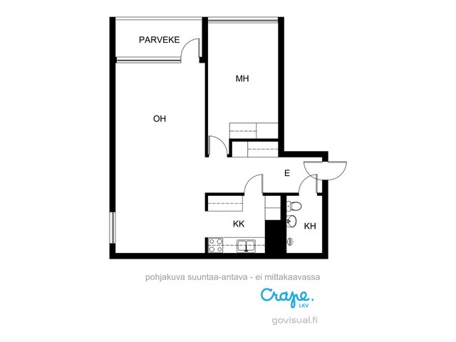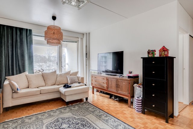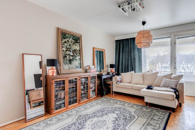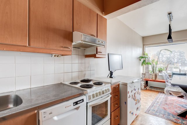 Asunnossa on toimiva pohjaratkaisu, jossa olohuone ja keittiö yhdistyvät saumattomasti. Keittiö on varustettu kaikilla tarvittavilla kodinkoneilla, ja olohuoneen parkettilattia luo lämpimän tunnelman. Makuuhuone tarjoaa rauhallisen paikan levätä ja kylpyhuoneessa on sekä suihku että amme. Kulmahuoneisto.